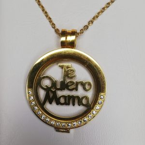 Colgante dorado moneda personalizado con frase Tequiro mama